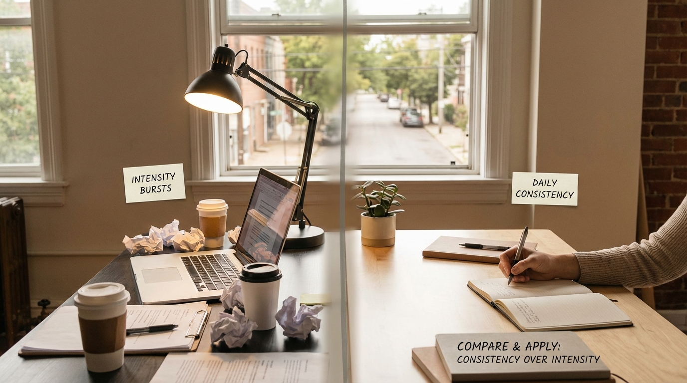 Consistency compounds just like interest in a bank account. While high-intensity efforts demand heavy recovery time, daily habits keep you moving forward without the crash. By focusing on the boring basics, you create a structure where progress becomes inevitable. Reliability beats extremes every single time. It is simply all about the long game.